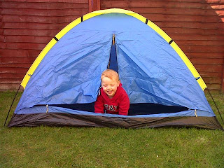 So we have been keeping Joshua at home and as the weather has been so nice there has been plenty of garden time. We dusted off the boys tent and set that up for them to play in - although Joshua made this a garage for his go-kart.