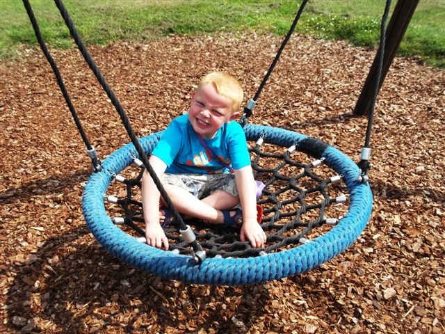 The camp site also had a simple kids play area for the children to amuse themselves in. Joshua was a bit of a daredevil on the climbing frame as he was climbing right to the top and then trying to traverse across the cargo net. He ended up hanging there stuck shouting for me to go and get him down. Brandon just loved the swings there despite them not being baby swings. This was the first time he has used a normal swing without the baby seat/bar and was holding on really well and going very high/fast.