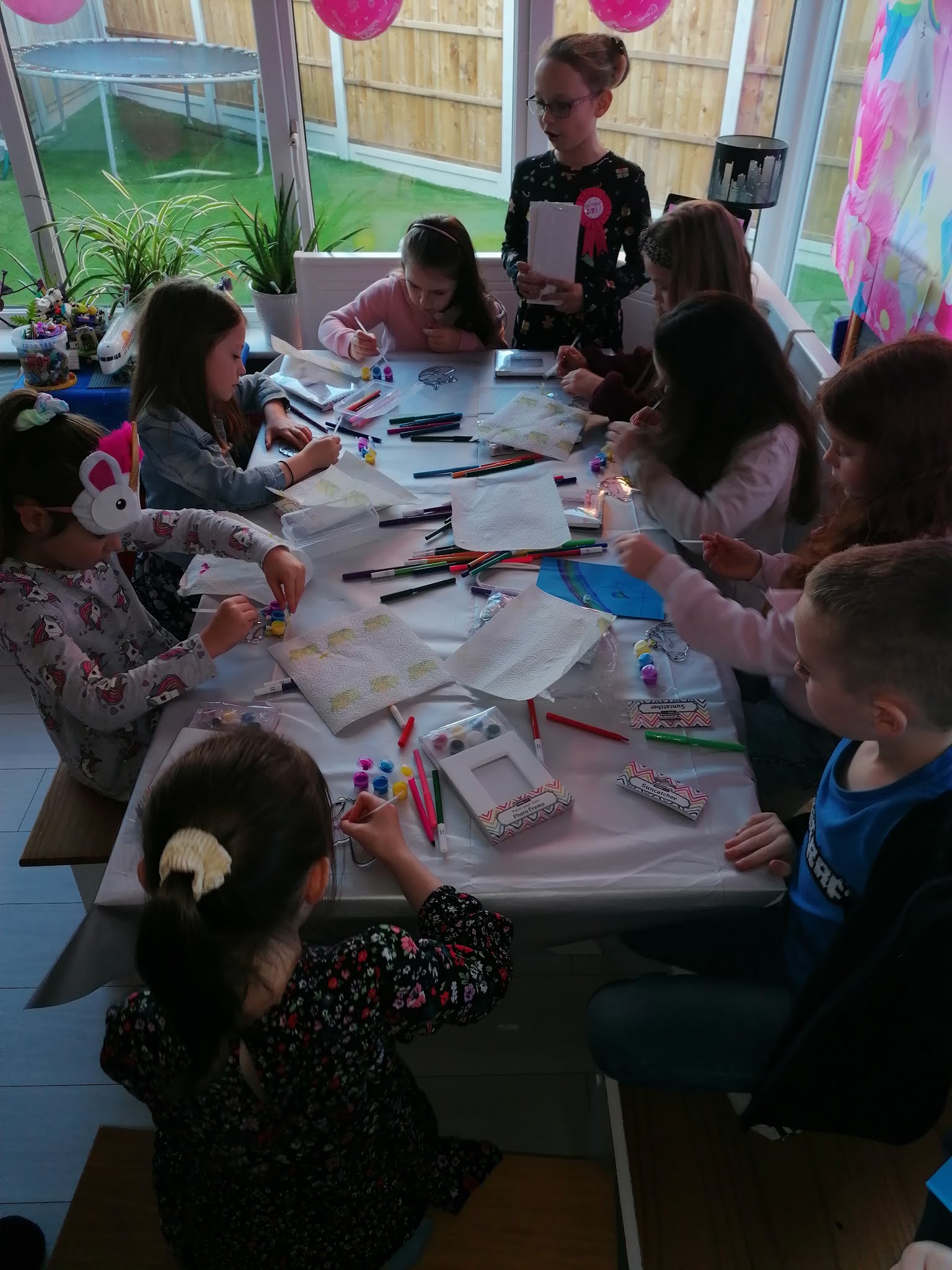 | A unicorn selfie frame for her party. |