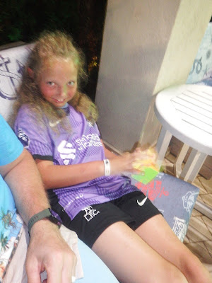| A rare occasion with Tina in the pool playing volleyball with Brandon. |
